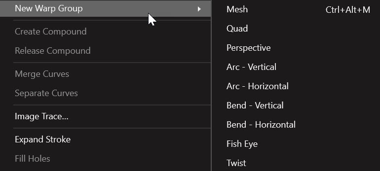 Amivel most dolgozni fogunk, az a Vector → Warp Group.
