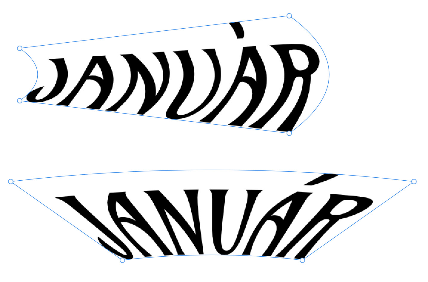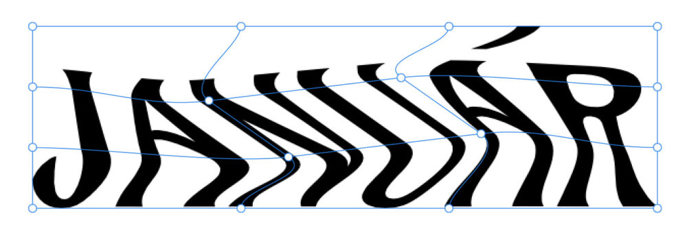 Az eszközök nagyon kreatívan használhatók: pl. egy téglalap (Rectangle Tool, csak stroke, hogy látszódjon), majd a Pen Tool-lal egy hullámvonal. A feliratot kijelölöd, Layer > New Warp Group > Quad, és a sarkokat/oldalpontokat a sablonhoz igazítod; ahol kell, új csomópontot adsz hozzá, és a hullámvonalhoz „tekered” a formát.