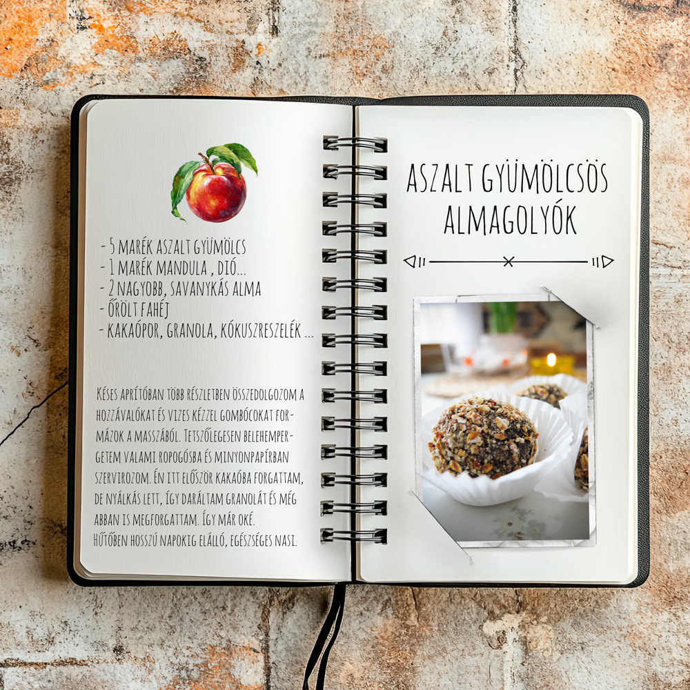 Mivel divat – és praktikus dolog a maradékmentés, én tényleg maradékokból dobtam össze ezt az (éppen sütés nélküli) édességet. Pár szem datolyával, enyhén pirított dióval, 2 piros almával már majdnem meg is van a desszert alapja. (Ami kimaradt a receptből, de fontos, hogy darabos maradjon a massza.)