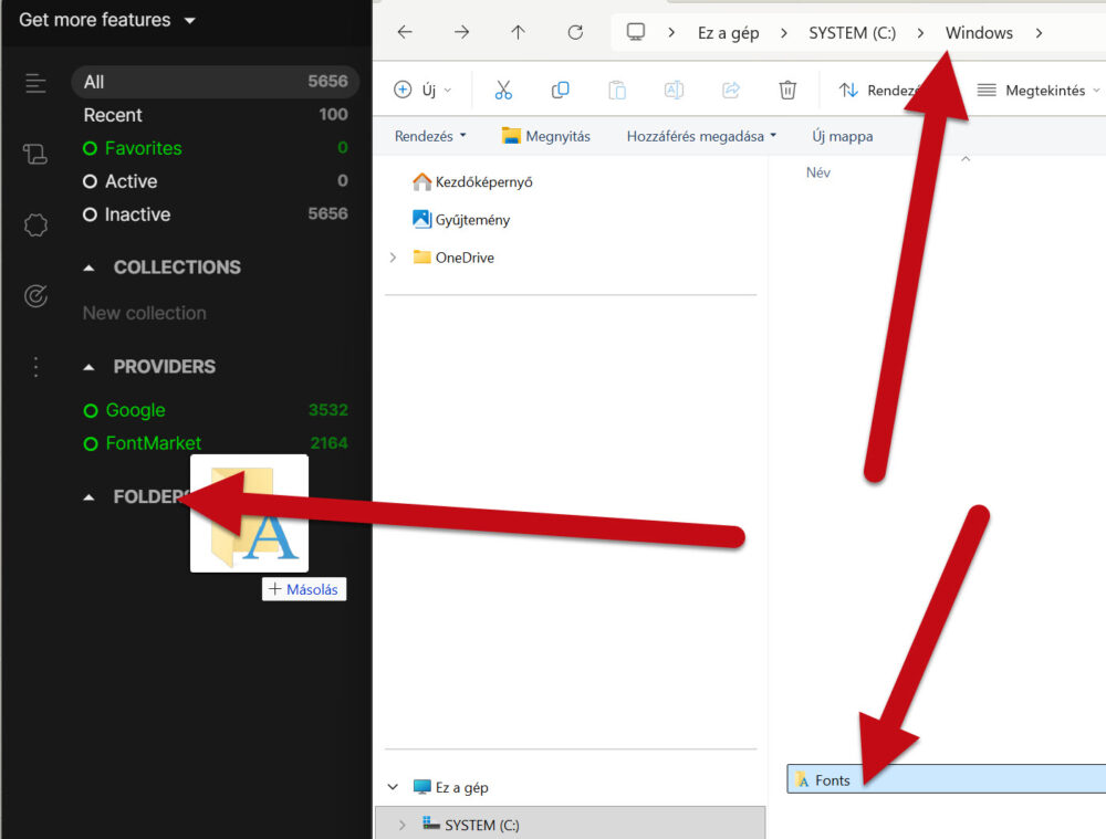 Húzd be a telepített font-ok mappáját (Windows-on itt van: C:\Windows\Fonts)