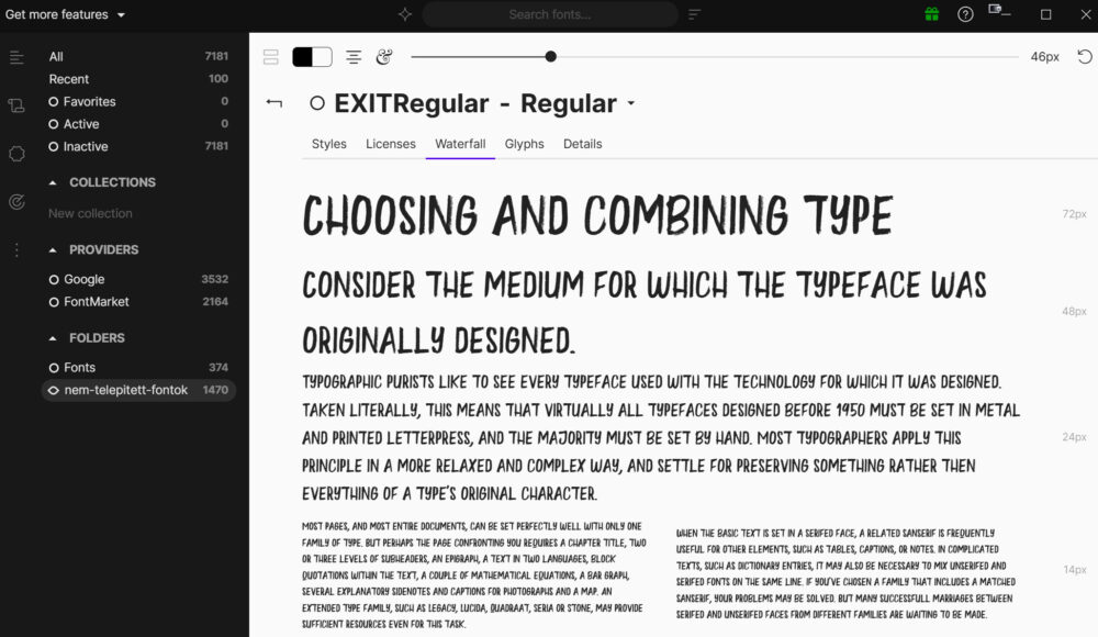 Kattints rá, és részletesebb infót találsz. Például a Waterfall nézetben ugyanazt a betűtípust láthatod különböző méretekben egymás alatt.