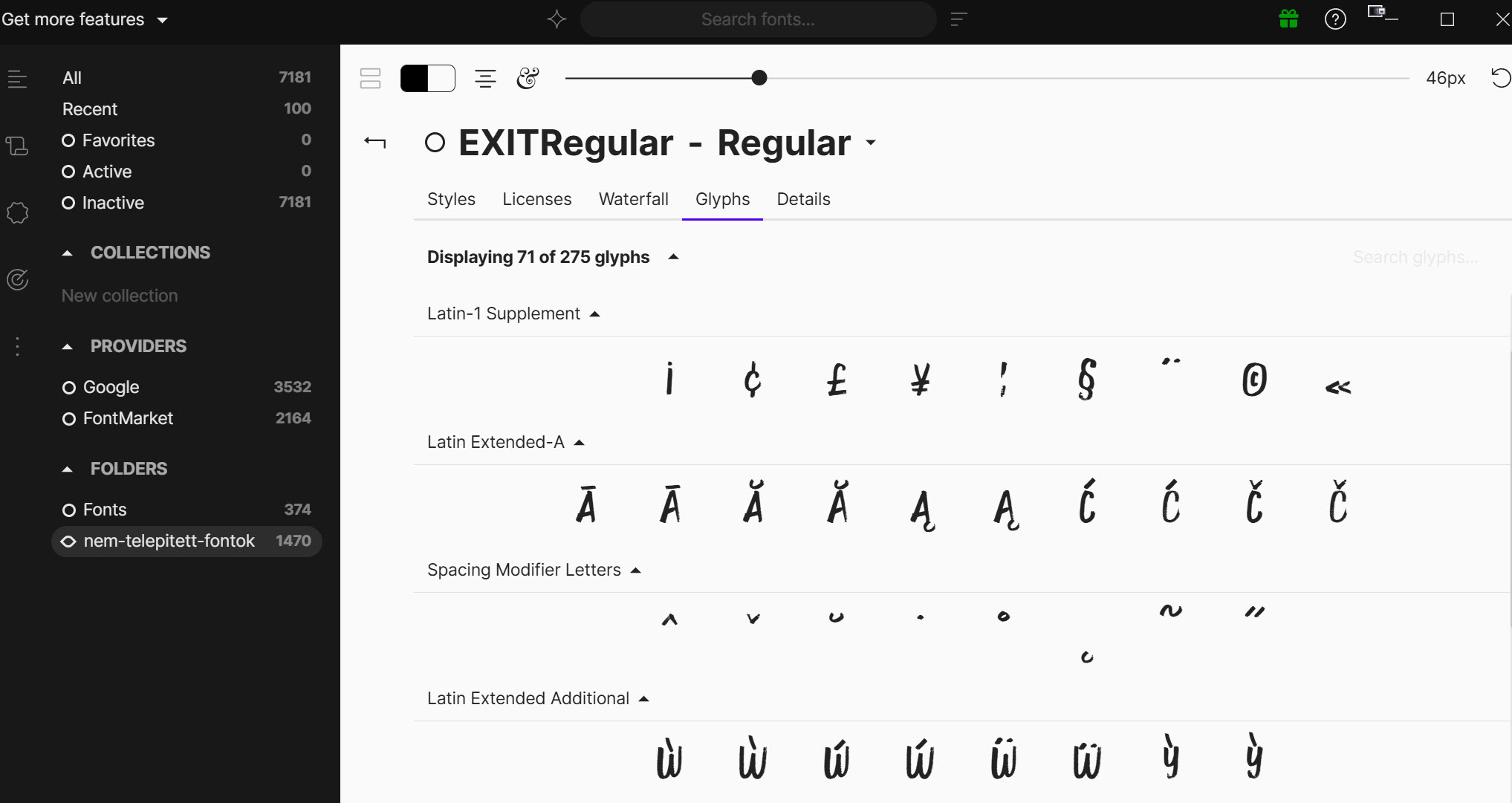 • Collection (Virtuális gyűjtemény): Ez egy belső, virtuális csoportosítás a programon belül. Lehetővé teszi, hogy stílus, projekt szerint rendezd a fontokat anélkül, hogy a fájlokat ténylegesen mozgatnád a merevlemezeden.
