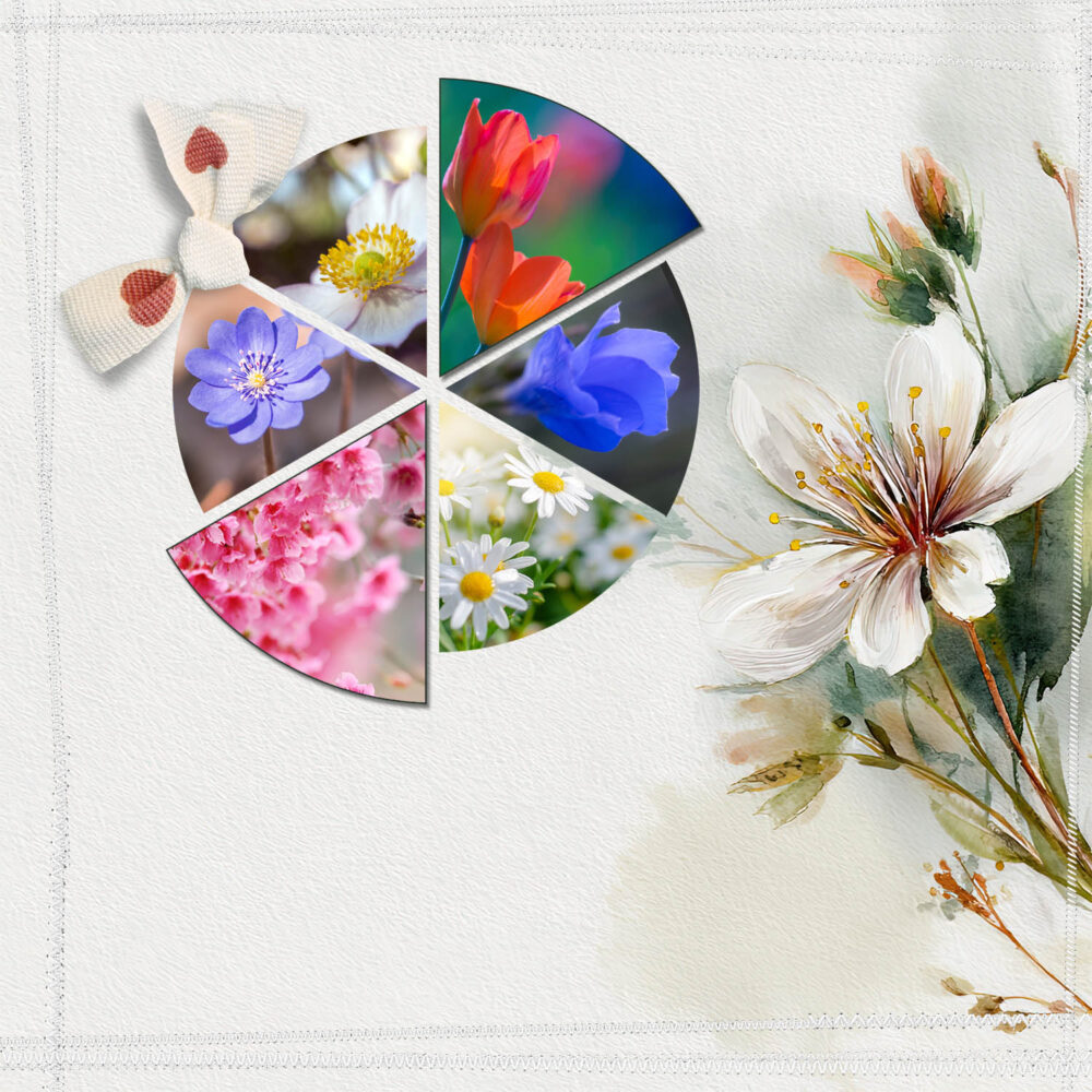 A heti Bingóban egy vázlat alapján kell dolgozni, amiben egy kör alakú fotó van. Kicsit szabálytalankodtam, mert több fotó lett, a kört meg feldaraboltam. Nézzük, hogyan.