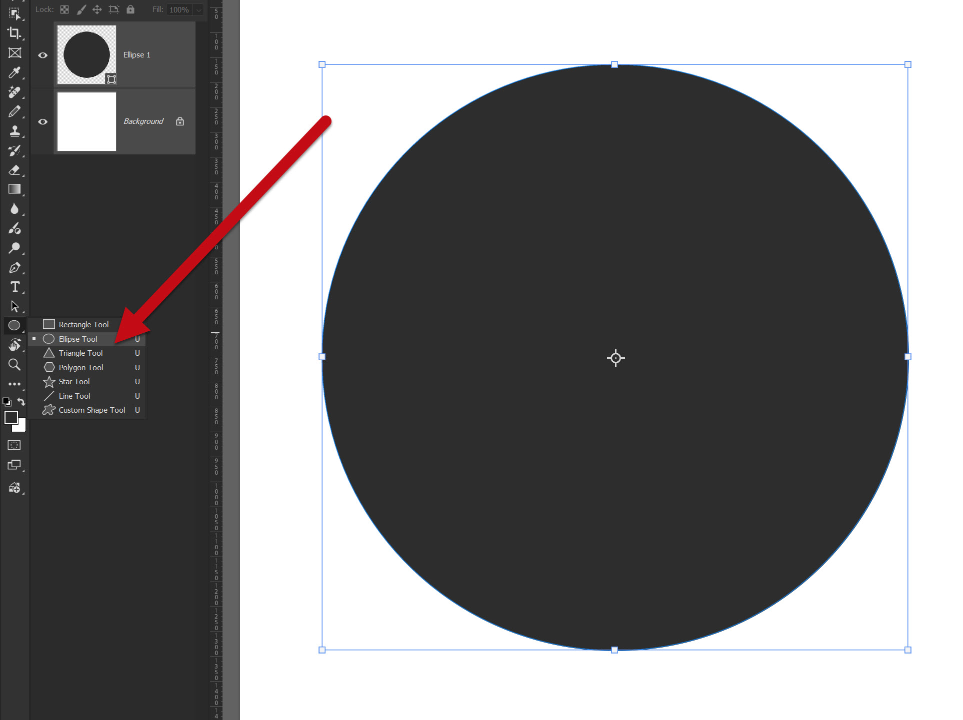 Válaszd az Ellipse Tool-t, és a Shift billentyűt nyomva tartva rajzolj egy tökéletes kört. Színezd valamilyen színre (felső sávban Fill (Kitöltés), hogy jól látható legyen, és szükség esetén méretezd át a Ctrl+T billentyűkkel.