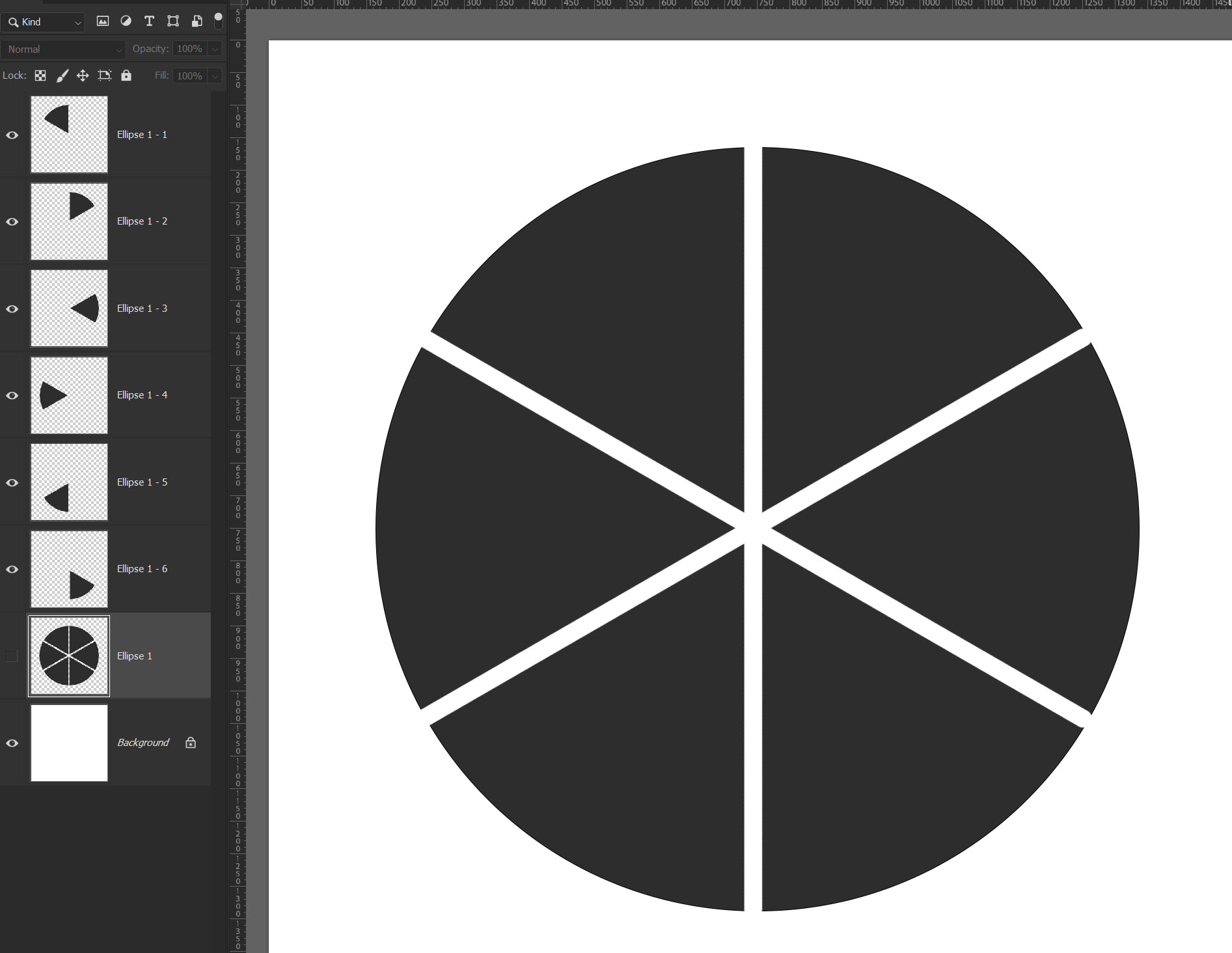 Már csak a szeletek külön rétegre helyezése maradt hátra. A leggyorsabb megoldás a Split to Layer, amiről egyszer már írtam egy cikket. Ha nem ezt választod, egyszerűen jelöld ki az egyes részeket, és Ctrl+J-vel másold egy új rétegre.