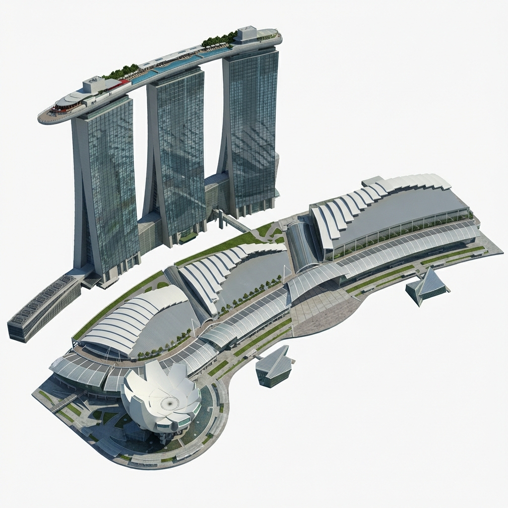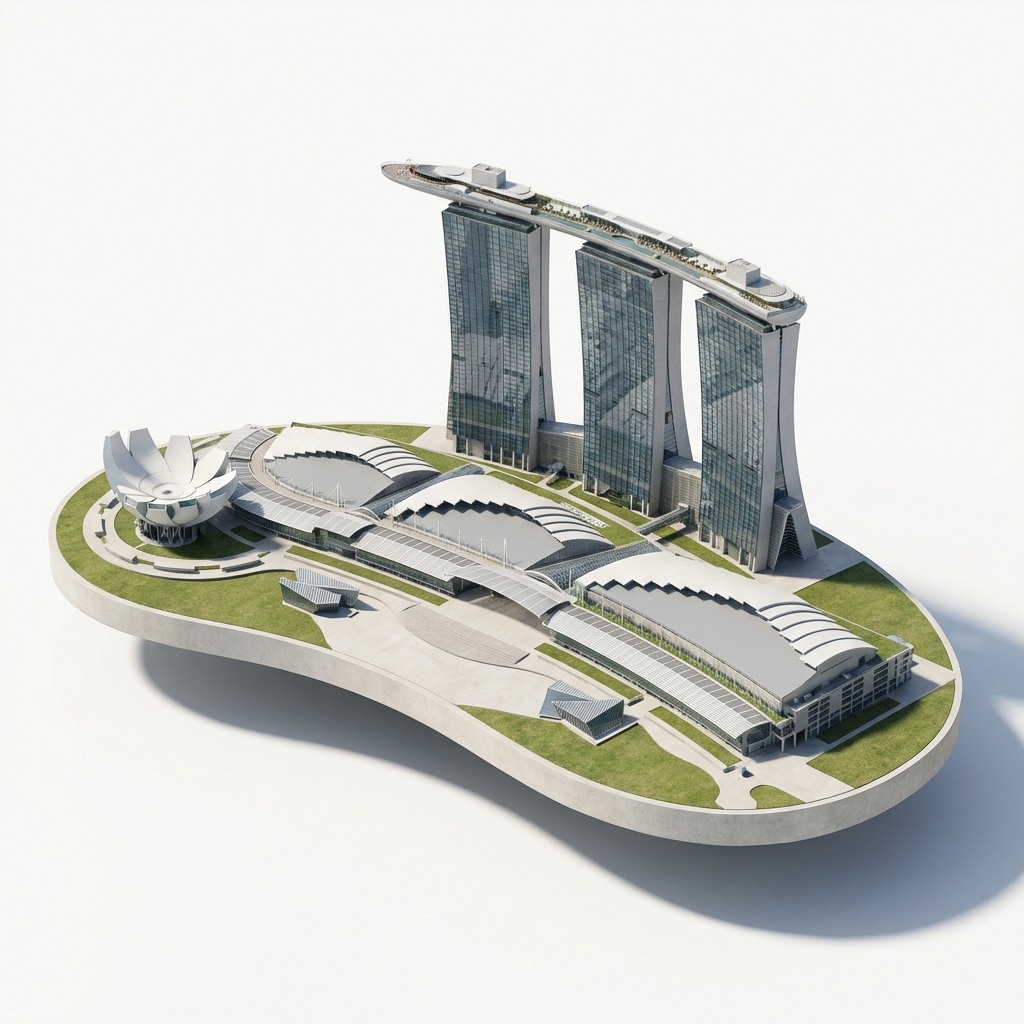 Használd a feltöltött képet referenciaként egy magas minőségű 3D épületmodellhez. Az épület egy letisztult, körbevágott talajszigeten jelenjen meg, enyhén kiemelve a környezetéből. Őrizd meg az arányokat és a fő részleteket. Izometrikus nézet, fehér háttér, prezentációs stílus.